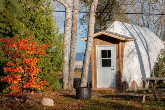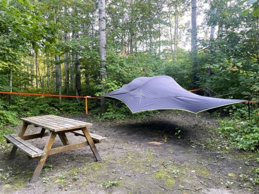 Vous trouverez des sites de camping intimes au bord du lac, dans un boisé ou dans un aménagement nourricier, des prêts-à-camper variés d’inspiration ilnue (dortoir 12 personnes – Wigwan 4 pers. – Tipi 6 pers.) et des tentes suspendues, un produit unique dans la région.