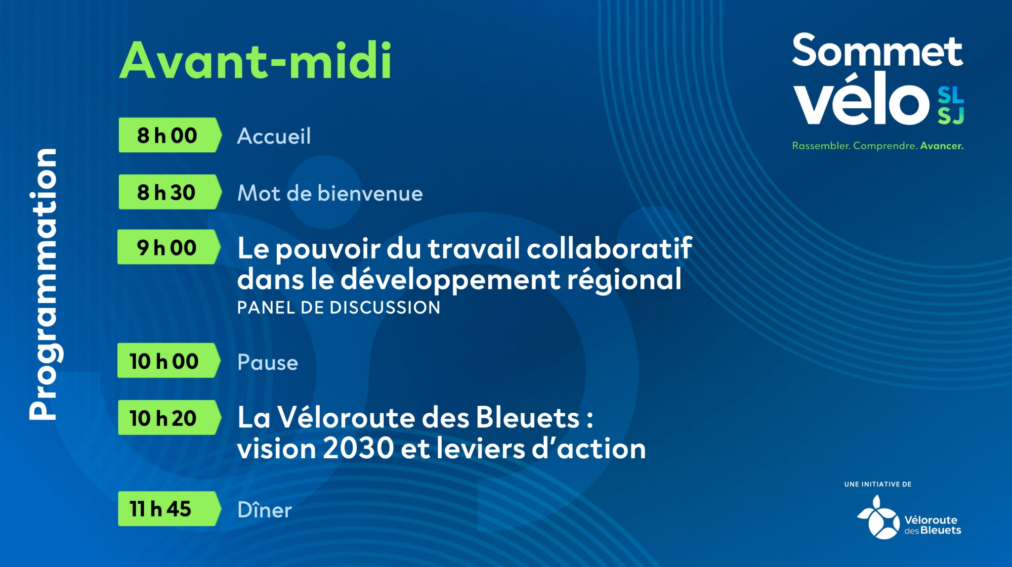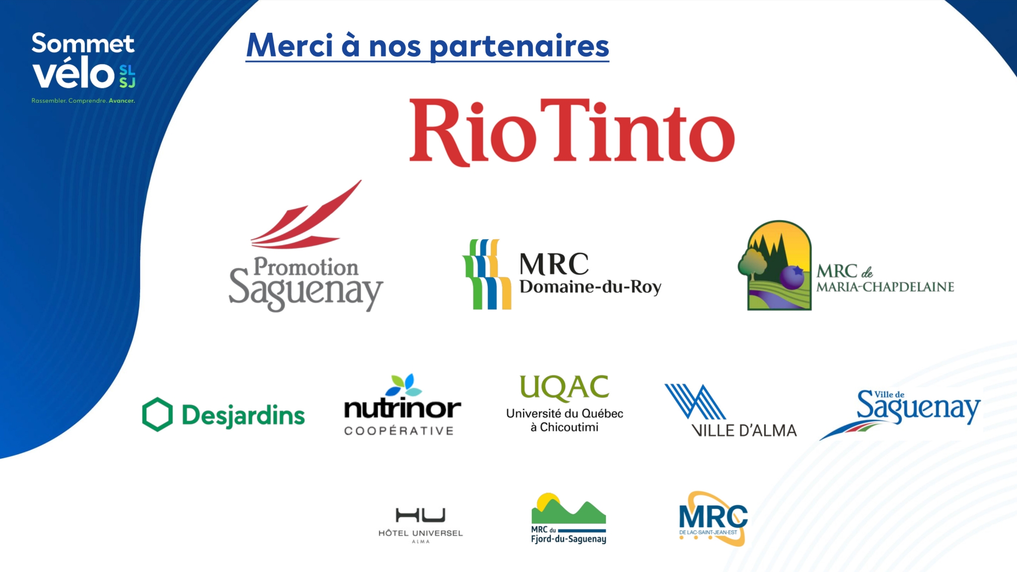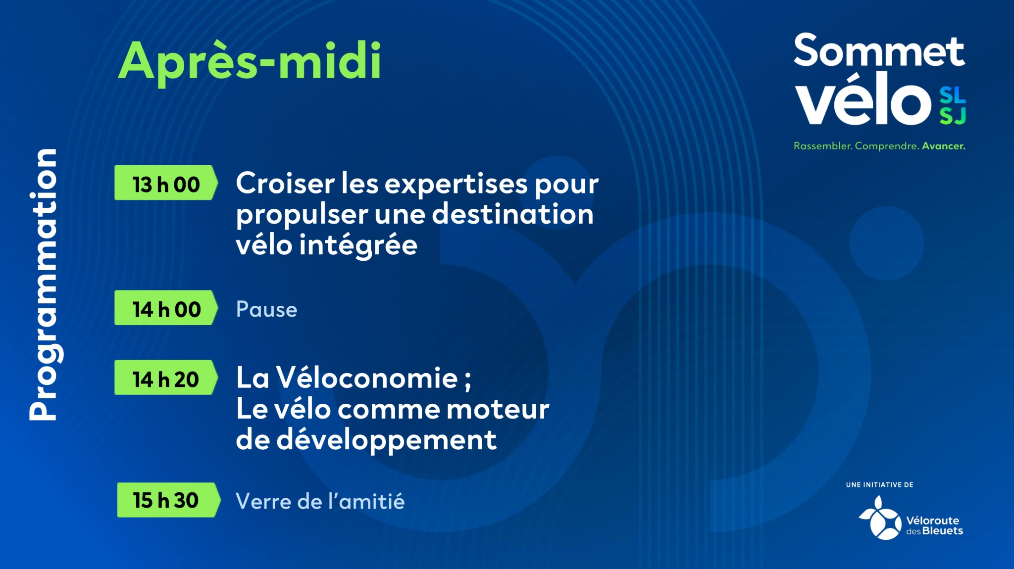 C’est sous le thème « Rassembler. Comprendre. Avancer. » que le Sommet vélo Saguenay-Lac-Saint-Jean propose un espace stratégique de réflexion et d’échanges visant à mobiliser l’ensemble des acteurs autour d’une vision intégrée du vélo comme levier de développement économique.